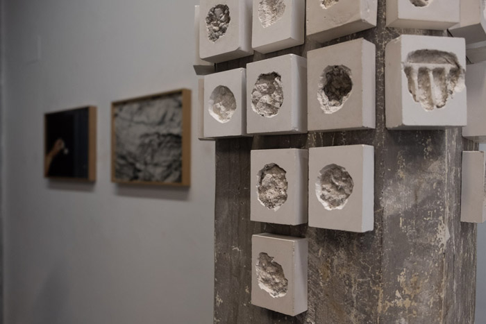 Aluminia takes as its starting point the impression left by the road surface in small wads of aluminum foil littered on the street, from there transforming these textures in to the topography of a fictional asteroid called Aluminia. Multimedia installation (two-channel video, sound, photographs, plaster and aluminum casts). Official selection, Proyector 2023 (Madrid).